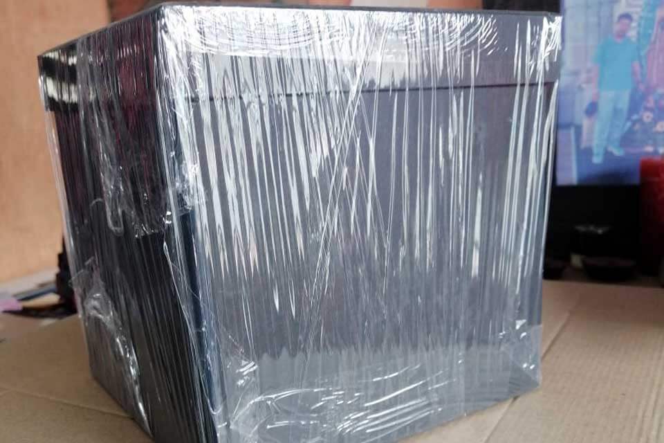 Cajas de cartón, madera, acrílico