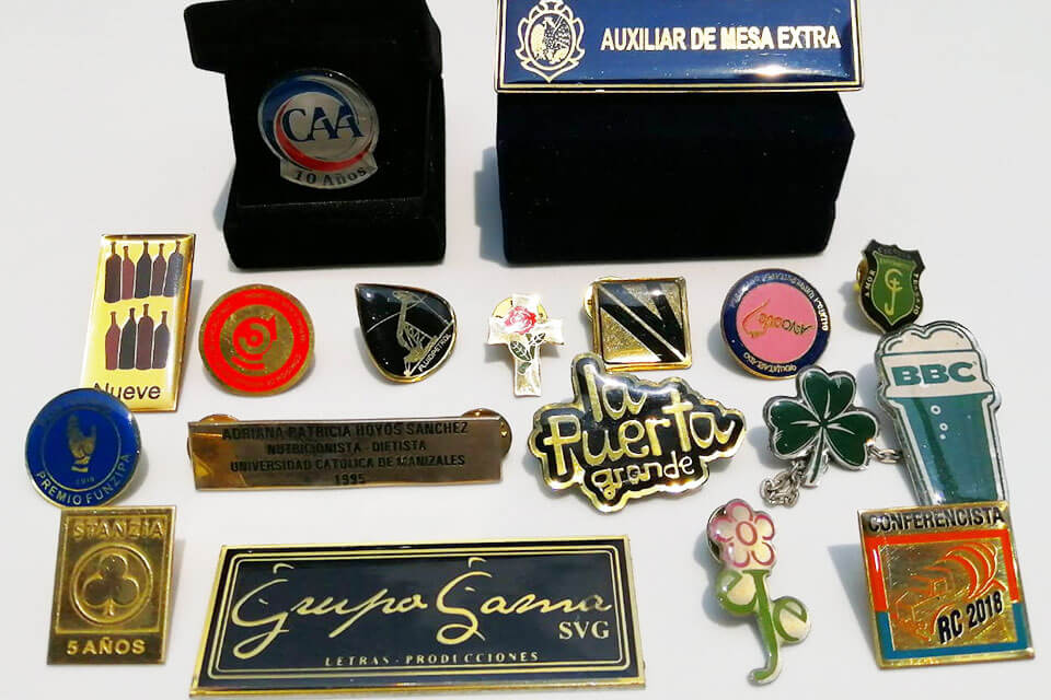 Fabrica de pines para Solapa. Un pin es una insignia o adorno pequeño que se lleva prendido en la ropa.