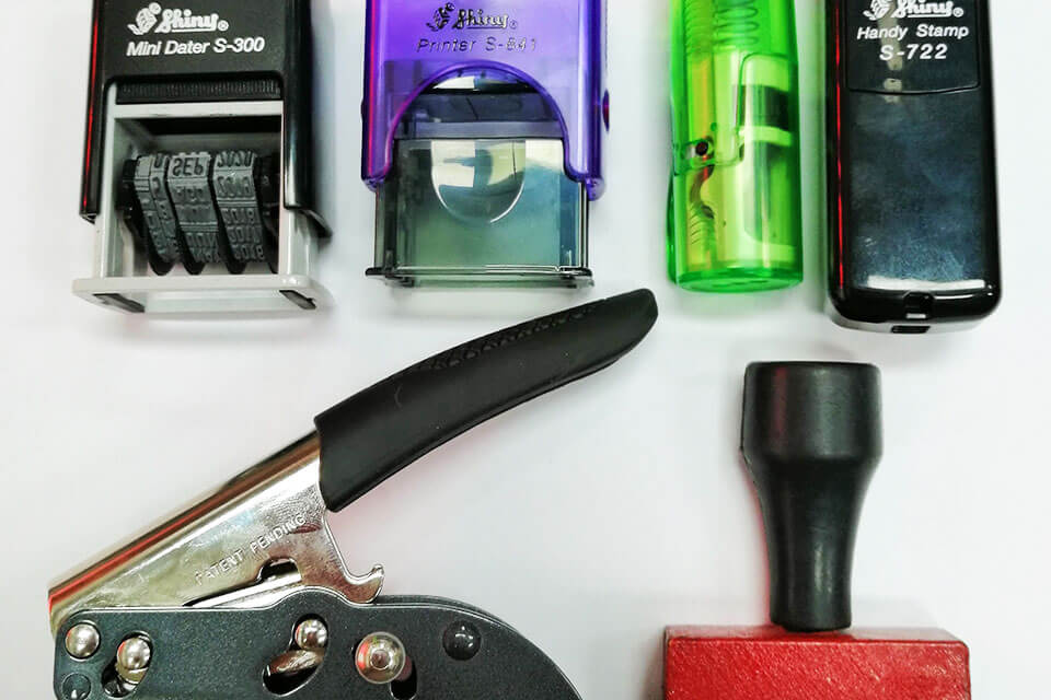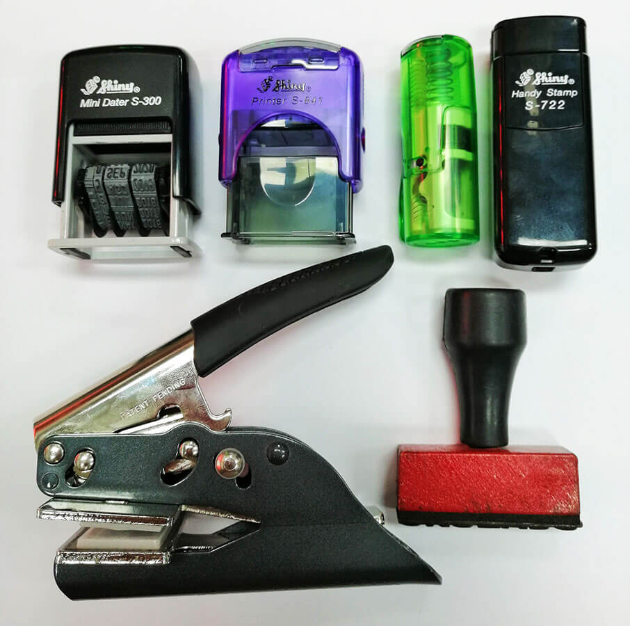 Sellos automáticos, fechadores, numeradores, madera y sellos secos.