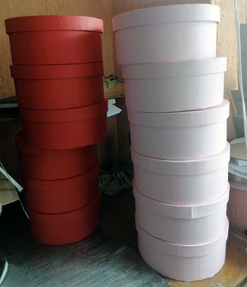 Cajas de cartón, madera, acrílico