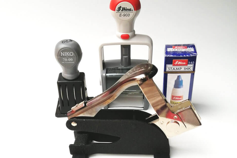 Sellos automáticos, fechadores, numeradores, madera y sellos secos.